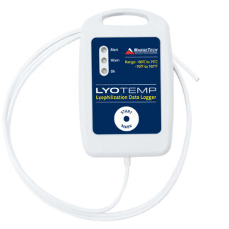 LyoTemp 提供 32,767 个带日期和时间戳的温度读数,精度为 ±0.5 °C。LyoTemp 值得信赖,可监控关键应用,配备可配置的高/低警报限值和高/低警告限值,可在温度接近不可接受的水平时向用户发出警报。